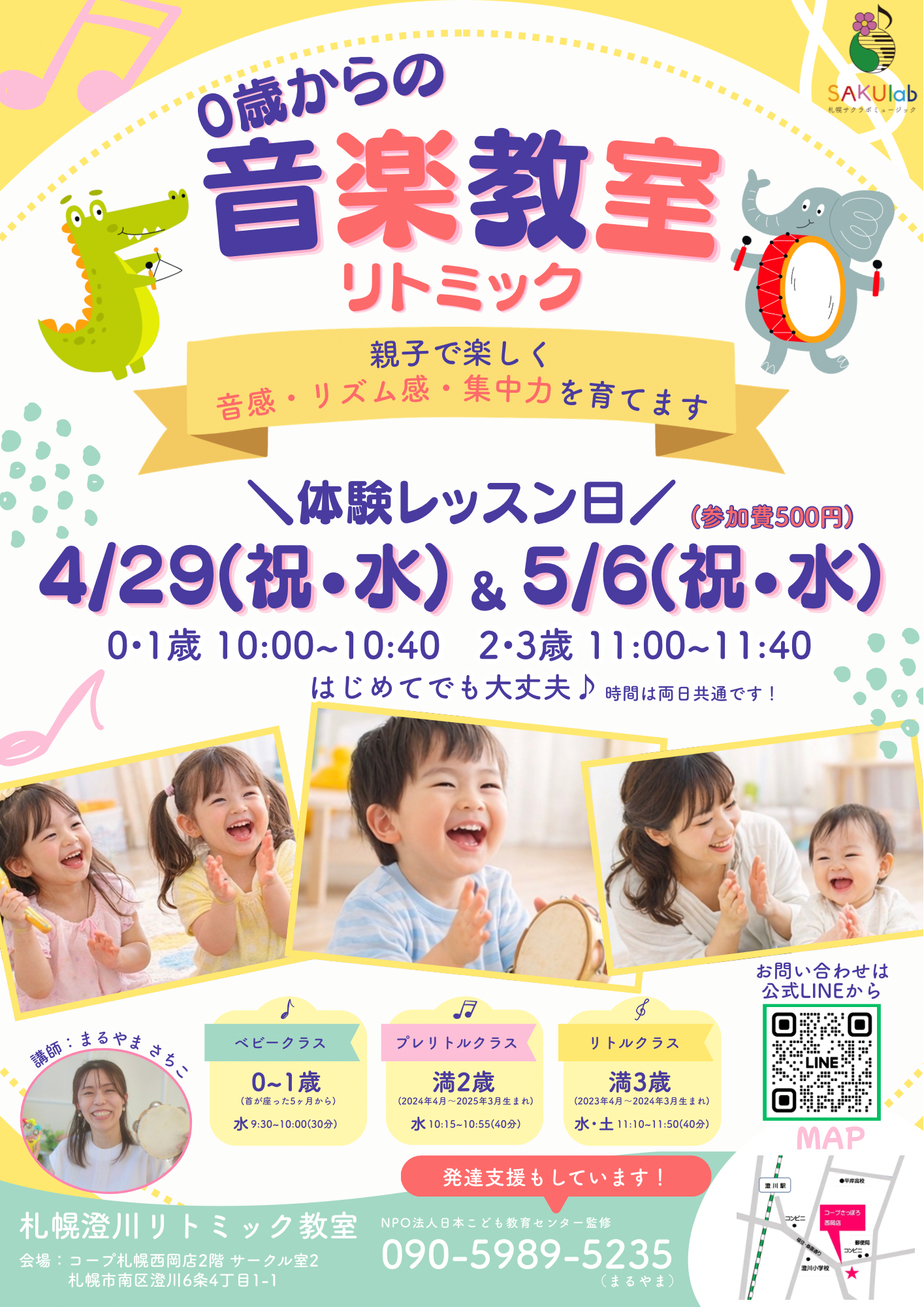 小さなうちはあっという間です。この大切な時期に、ママも一緒に楽しいリトミックレッスンを始めてみませんか?